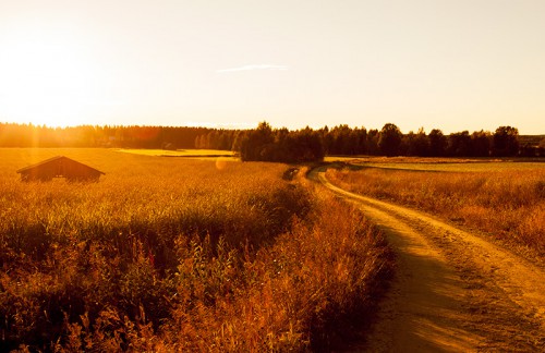 Lada och väg i naturlandskap