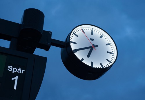 Klocka på tågperrong